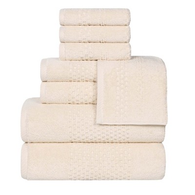Experience the ultimate in family comfort with our Ribbed Textured Border Zero Twist Cotton 8 Piece Towel Set by Blue Nile Mills. These generously sized towels are perfect for everyone, from adults to kids. The cloud-like softness and exceptional absorbency will make you feel pampered after every bath or shower. Plus the quick-drying fabric means less time waiting and more time enjoying your day.