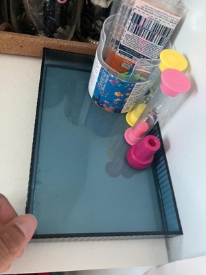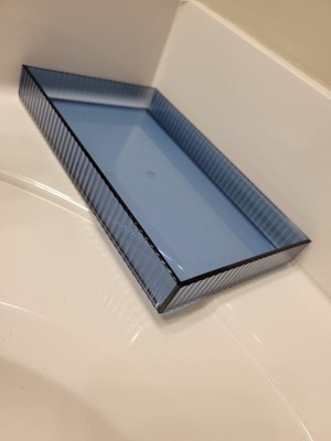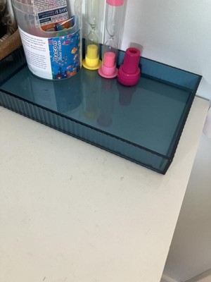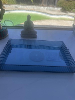 This little blue tray has so many uses from simply setting a container on it to organizing items on a counter, in a cupboard, and even in a drawer. I've even used it to set daily makeup essentials in it for easy access and organization. It is a clear blue with ridged edges in a rectangular shape. This tray is sturdy as well. The sides are shorter/lower, but keeps items in place while diplaying them more. This is fun little tray that goes with just about anything!