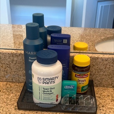My son is very particular about no one touching his products! I love this ribbed tray in blue to keep his things in one easily cleanable spot and for everyone else to know it's not up for grabs! It is the perfect size to hold a variety of products and a damp cloth will get any spills right up! Perfect for the bathroom or a bedroom!