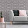 A full roll of this product is 20.5 inches wide and 396 inches long. A full roll can cover up to 56 square feet depending on the design match and pattern repeat. A sample of this product is 8 inches by 11 inches. Create a dramatic focal point in any room with the Sublime Ribbon Geo wallpaper. Draping ribbons of grey are stunningly enhanced with gold metallic and textured highlights. The ribbons gracefully cascade, creating a classical geometric design set against a lighter grey background. Offers a smooth, untextured finish. Straight match with a 13 inch pattern repeat.