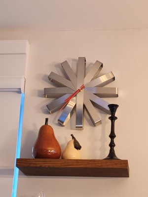I love the Umbra Ribbon Wall Clock in silver! The stainless steel finish gives it a sleek, modern look that stands out without being too bold. It works perfectly as both a functional clock and a statement piece of décor. It’s silent, which is a huge plus—no annoying ticking sounds. The size is just right, making an impact without overwhelming the space. It was also easy to hang and feels well-made. If you’re looking for a stylish and minimalist wall clock that doubles as art, this is a great choice. Highly recommend!