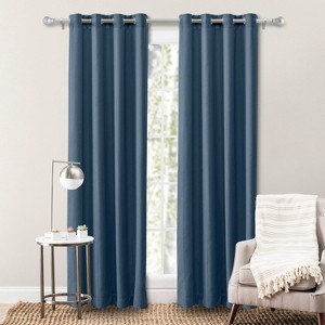 Bring both privacy and a decorative touch to any room in your home with this room darkening single grommet panel, in a shorter length. Made from 100% polyester, this piece is designed to block out natural light so you can sleep in on Sundays and enjoy mid-day movie marathons. The fabric is woven with two layers of colored yarn wrapped around a layer of black yarn for a superior room-darkening and energy-saving impact. A solid hue outfits this design for an understated look, while vertical dots form subtle stripes for a dash of distinction. These 45" and 54" length window solutions are perfect for any short window. Metal grommets adorn the header, making the hanging process a breeze. To hang, use a decorative rod with a diameter of up to 1.25". Includes an attachable wand that can be positioned on either side for easy opening and closing. For easy care, just toss this panel in the washing machine and dryer (on a tumble setting). TRIPLE LAYER JACQUARD FABRIC: This triple layer woven fabric is accented with vertical dots for added style. The curtain is insulated to create superior room darkening adding extra privacy and energy savings