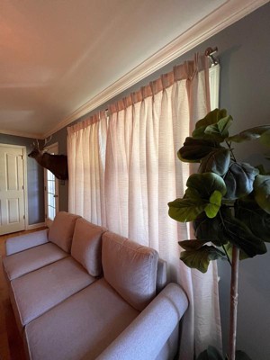 [This review was collected as part of a promotion.] These curtains are beautiful and allow some light to come into our living room! I should have streamed them before taking this photo but I was so excited to put them up! They are great material and hang really nicely! They were a perfect fit and easy to install!