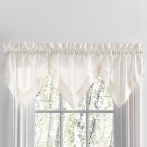 Reminiscent of timeless beauty, classic and sophisticated, this soft lightweight curtain adds elegance to any room, diffusing light and providing privacy. This 100% fine cotton 3-piece handkerchief valance features elegant needlework: intricate bordered sides and bottom hems, joined with mitered corners! Instantly elevate any window in your well-appointed home with this 3-piece (16"W) handkerchief valance totaling 48" wide. For a breezier and more casual look, this charming design features a 15" length measured from top of rod pocket to bottom hem. Great for layering or can stand on its own. Whether you hang this valance on its own, paired with swag pair or over a matching tier pair, this richly woven fabric will add fullness to any window. This unlined 3-piece valance features a 2" rod pocket and 1 1/2" header for effortless installation onto your preferred hanging rod (not included). Available in white and natural 100% FINE COTTON FABRIC: This fine cotton fabric is both casual and elegant, creating a warm look and feel in any space. This gorgeous and unique semi-sheer fabric creates the perfect amount of light filtering, while allowing the curtain to hang gracefully and beautifully in any room
