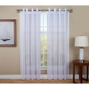 A versatile, semi-sheer curtain are just the right weight to filter the light while still offering privacy. The soft, beautiful sheer panel is finished with a weighted chain-like hem which allows the curtain to hang effortlessly straight. No more corners sticking out! A modern grommet design on top lets you hang the panel effortlessly, while the subtle texture from the linen brings dimension and warmth to your window. The finely woven fabric gives them a pretty texture, too. Great for layering or can stand on its own. Whether you hang this panel on its own or with room darkening panels, this richly woven fabric will add fullness to any window. The panel measures 54" wide with lengths available in 63"L, 84"L and 96"L. Total of 8 grommets per panel with center diameter of 1.5". This exquisite style features characteristics of any custom window covering, adding a rich and elegant look to your home. Available in both white and ivory. Machine wash on delicate cycle in cold water; line dry. Touch up with cool iron if desired LIGHTLY FINE SEMI-SHEER FABRIC: This richly woven fabric with natural yarns creates a soft and subtle sophisticated look. It is both casual and elegant, creating a warm natural look and feel in any space.