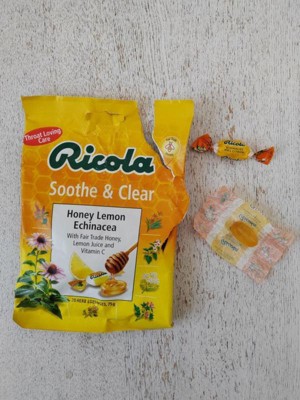 Good throat soothing lozenges with honey, lemon and vitamin c, plus Ricolas blend of 13 Swiss herbs to sooth and clear your throat. Nice botanical-citrus taste.