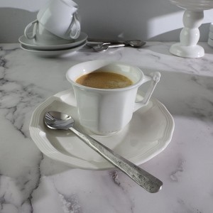 - Set includes: 4 Coffee/Dessert spoons