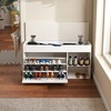 - The interior of the shoe cabinet features a swivel shoe rack, which has three tiers that can hold 3-4 pairs of shoes per tier to fulfill all your storage needs.