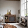 Walnut side table cat litter box in a stylish furniture design. Can be used in various home spaces as a storage box, decorative item, or storage solution that is both fashionable and comfortable.