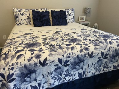 [This review was collected as part of a promotion.] I am obsessed with the color and pattern of this quilt! The different shades of blue and white really make my room pop! I love that the whole quilt is not covered in the pattern, the top portion is solid white and the pattern fades into it. The material is super soft and light weight. I love that it’s not super thick or a warmer material. I ordered the king size and it fits beautifully on my bed. It goes over each side by at least a foot. I have gotten so many compliments on it already! I would highly recommend!