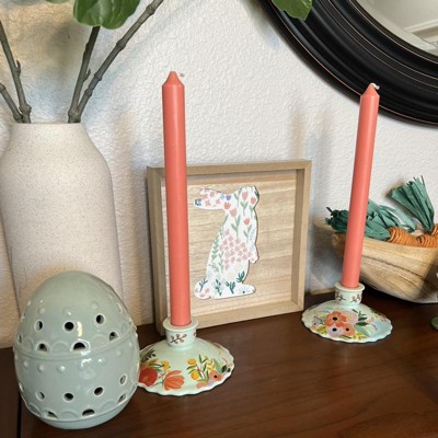 I love these candle stick holders! They are so beautiful and fun for spring or anytime of the year. I love that it comes with two color options for the candles.