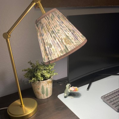 Illuminate your workspace in style with this Strawberry Fields Desk Lamp from Rifle Paper Co. x Target. This desk lamp features a brass-tone metal base and a pleated linen shade with lovely floral print. It has a five-foot power cord with an inline rocker switch for versatile placement and easy operation, and it requires one E26 bulb (not included) to fill the space with a soft, warm glow.