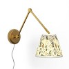 Bring versatile lighting to your space with this Strawberry Fields Wall Sconce Adjustable Arm Lamp from Rifle Paper Co. x Target. This wall sconce-style lamp features a traditional adjustable arm design that allows you to easily move the light wherever you need it. The adjustable metal body in a brass finish blends with a variety of decor, while the pleated fabric shade with a charming floral print diffuses light with a warm glow.