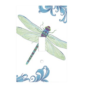 Add an elegant botanical accent, featuring a beautiful dragonfly on this single toggle light switch cover, to any room.