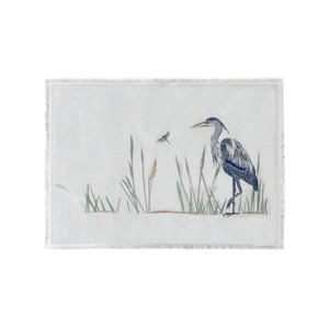Beautifully embroidered placemat in a cool coastal grey featuring fringed edges. Whether poised at a river bend or cruising the coastline looking for its next meal, the Great Blue Heron is a majestic sight.