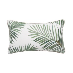 RightSide Designs Palm and Lizard Indoor/Outdoor Lumbar White Pillow
