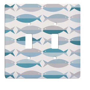 Spa blue, pale sea-foam, light grey and a neutral beige, all the colors of cool sea glass create this beautiful fish pattern double toggle switch plate cover. A fun accent for any seaside retreat.