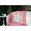 20x20 indoor/outdoor accent pillow featuring cheerful songbirds perched on winter branches. Made from 100% polypropylene, it brings festive charm to sofas, chairs, porches, or patios. A warm seasonal accent that complements Christmas and winter home decor.