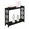 Spruce up the essence of your living room with the Ring Console Table with Shelf by Breighton Home today! This distinctive contemporary piece showcases a well thought out design that combines a clean line silhouette and two circles that adorn each of the side frames. Crafted with durable materials to become a staple in your home. The top and bottom shelves are fashioned from particle board that is finished with a non lead based paint and melamine, making them easy to maintain. The frame design and legs were constructed from MDF and finished with a non lead based paint. With ample shelves, this two tier unit will satisfy your display and storage needs. Exhibit all your most beloved collections or books with pride, as this accent table is stylish and ideal for any type of mementos. With endless versatility this item can be placed anywhere, from hallways to your home office, it will fill the room with style. Add it to your ensemble today and enjoy its simple assembly that is worth every step! Complete the look with additional furniture pieces from the Ring Collection by Breighton Home. They are available in multiple finishes, so you are sure to find the perfect fit for your home. Each sold separately.