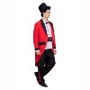 The show must go on! This fun Ringleader costume features a red jacket, white shirt with an attached black bow tie, and black pants that give you the right blend of dashing stage presence. The jacket features long tails that fall to the back of your knees, black cuffs, and lapels. Completing this costume is a black top hat. All these components together are designed with high durability so you can hop into the center ring as often as you like! A Toynk exclusive!