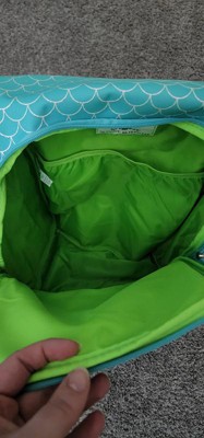 [This review was collected as part of a promotion.] I want to start with we love the design of this bag. It is huge and has a ton of space to carry things in. Our daughter loves how the straps fit her just right. She loves that it is a mermaid print and that it has hooks for her to hang her bag .
