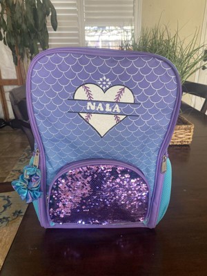 [This review was collected as part of a promotion.] This bag is perfect for my young softball players. It has a cute mermaid design with "flip sequins" on the front pocket. The bag is deep with a pocket on the inside. The backpack has 2 mesh pockets on the sides of the bag for storage as well. I enjoy the thick plastic hooks on the back to hook the bag to the fence. This is so helpful and a nice feature to keep your bag off of the ground. My girls love the flippy sequins on the front pocket of the backpack and that thw bag came with a matching scrunchie! Overall, I certainly would recommend this fun backpack.