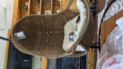 This chair should really come with a warning! I was so excited for a fun chair to hang out in, but as soon as it got set up my cat has claimed it ever since! I've tried to kick her out but she just stares at me with big blue eyes, so of course I can't say no. She hardly even cuddles with me anymore she'd rather sit in the chair. She gives it a 10/10 and I would agree. Most expensive cat chair ever, entirely worth it.