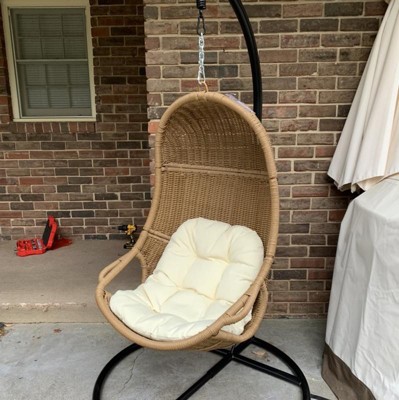 Take in the beauty and serenity of the great outdoors in seating that will encapsulate you with coziness. Built from beautifully woven wicker, this chair will have you cradled and hanging in comfort as you enjoy the refreshing breeze of the great outdoors. This is complete with side handles to help you get in and out of the chair and also includes plush cushions for extra coziness. From summer lounging to stretching out with a good book, this hanging basket chair will have you relaxing with ease.