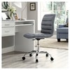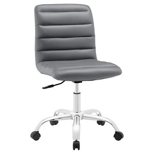 As with the ripple after-effects caused by the toss of a pebble, there's no telling where the Ripple armless office chair will take you. For those who appreciate natural resolve, without the need to know the destination point, then Ripple is for you. Outfitted with a polished chrome steel frame and five dual-wheel casters for easy mobility over hardwood or carpeted surfaces, the padded vinyl Ripple armless office chair begins and ends with innovation. Ripple is perfect for conference rooms and workstations, features fine stitching and trim throughout, and comes fully height adjustable with a 36-degree swivel.