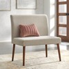 Update your dining space with the Ripton Dining Chair from Buylateral. Its’ Mid-Century modern vibe with cushioned seat and back, brings comfort to family meals or while conversing with friends. Upholstered in a soft cream linen-like fabric with slightly angled and tapered solid rubberwood legs in a walnut finish. Complete your dining area by pairing with the Ripton Nook Dining Set or mix and match to create a one-of-a-kind look.