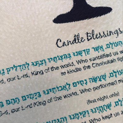Rite Lite 11.75" Tree of Life Inspired Menorah Tempered Glass Drip Tray - Blue/White
