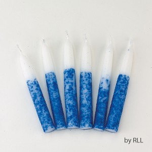 White and blue contemporary style Shabbat candles