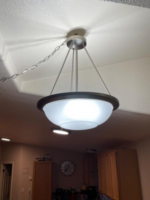Fits perfectly with my transitional decor. I am using this fixture without bulbs. We removed the wires and attached the rim and bowl close to the ceiling with hooks; it covers a Soltube fixture which brings in natural light through the roof; the Solatube has a bulb for evening non-sun time use. This is a classy-looking solution to the canned light look. We will be ordering three more to complete the four-fixture Solatube transformation in our enormous living room. Than you, Lamps Plus!