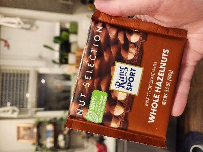 Smooth, flavorful milk chocolate. The hazelnuts add protein and crunch.
