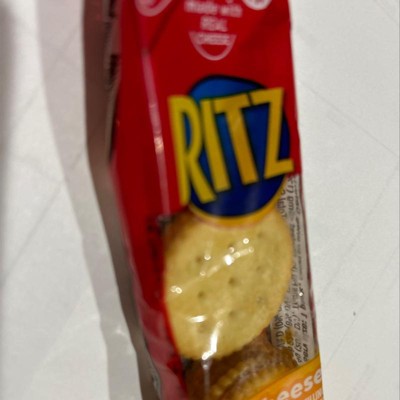 RITZ Cheese Sandwich Crackers are the classic go-anywhere snack that kids and adults have loved for years, layering smooth, creamy cheese between two crisp RITZ round crackers. Made with real cheese, the filling is smooth and mouthwatering. Individually wrapped for freshness and portability, these cheese crackers are a great addition to the snack food shelf in your pantry. Toss these single serving snacks in your office or school lunch for a special treat or keep some in your desk drawer for convenient office snacks. These individual RITZ cheese crackers snack packs are also convenient snacks for traveling, hiking and other outdoor adventures. Each individual wrapped pack contains six cracker sandwiches.