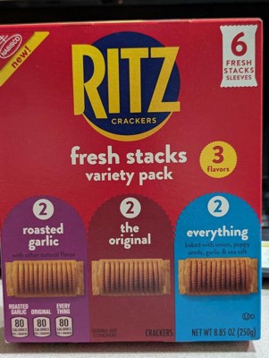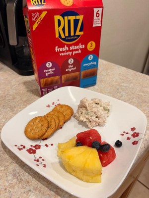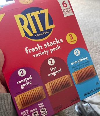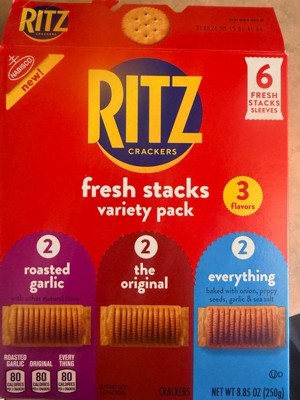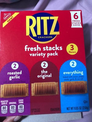 [This review was collected as part of a promotion.] These Ritz crackers fresh stacks variety pack are a great snack option! LOVE the conveniente of the individual packs_the stay fresh and are perfect on the go .the mix of flavors , especially roasted garlic and everything,adds a nice variety ,so you never get bored.Light ,crispy,and,delicius"