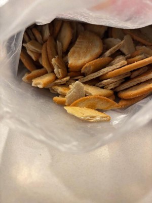 [This review was collected as part of a promotion.] Who bright idea was it to put all of these fragile crackers in a bag?? Almost all were broken and in crumbs as you can see from the pic. As far as taste, they were just as buttery and salty as I remember. The packaging is just trash though; I personally wouldn’t buy this in this type of packaging. The sleeves are better