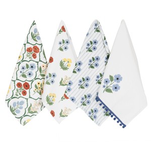 John Ritzenthaler Co. 100% Cotton Kitchen Towels, Blue Trellis Floral – Absorbent Dish Towels for Drying & Cleaning – Soft & Durable (Set of 4)