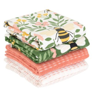 - BUZZING WITH STYLE AND FUNCTION. This 4-piece bee-themed spring towel set includes 1 fiber-reactive towel with a vibrant design 1 dual-sided towel for versatile use and 2 woven terry towels for extra absorbency—perfect for a cheerful kitchen upgrade.