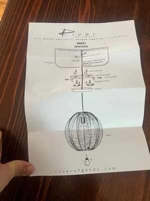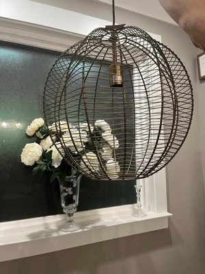 River of Goods 12" Mandie Wire Wrapped Caged Globe Shade Pendant Light: Antique Brass Finish, UL Listed, Adjustable Height