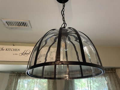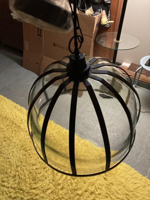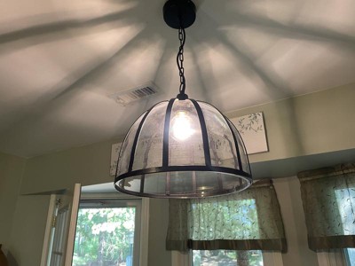 [This review was collected as part of a promotion.] A perfect lighting solution for any space in your home. Showcasing a black finish round canopy and a clear glass dome shade with a matte black metal frame. This hanging pendant light is easy to pair with other modern or industrial decor. It requires a 40 W bulb and has an adjustable hanging cord or the drop height can be set anywhere between 13.5 and 72.5 inches.