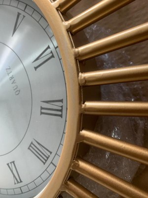 - Silver finish face. Gold finish sunburst rays. Metal construction.