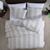 Muted gray tones and vertical stripes create the ultimate look for todays casual relaxed living. This subtle Contemporary set suits almost any décor. Leave it simple or add your own personal touches to this 3 piece. Perfect for your Guest suite or master bedroom, your dream Zen space awaits. 100% Cotton 200 TC
