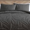 Update your bedroom with this soft quilted-top microfiber duvet set. The duvet has a large leaf quilt pattern on the top layer with a zippered duvet opening to convert this to a 4 season comforter. Neutral coloring makes this set great for coordinating into a variety of room settings. Set comes complete with two matching shams.
