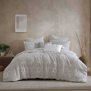 Cuddle up with this soft and inviting tufted woven jacquard comforter set. Featuring a subtle pattern with silhouettes and florals, this unique set is stylish and sophisticated and fits with many types of décor. The neutral gray color can fit in with a variety of color shemes making it a great choice for your bedroom. Complete with 2 shams and 2 filled decorative pillows.