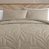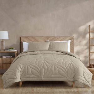 Update your bedroom with this soft quilted-top microfiber duvet set. The duvet has a large leaf quilt pattern on the top layer with a zippered duvet opening to convert this to a 4 season comforter. Neutral coloring makes this set great for coordinating into a variety of room settings. Set comes complete with two matching shams.