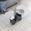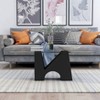 Gently curved sides and a bold base make for an unexpectedly gorgeous solid black table base. 8mm tempered glass extra protection. A statement piece equally at home in the dining room or workspace. Marrying elements of minimalism and sculptural boldness, this modern coffee table is a dramatic centerpiece in any room.