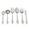 - Includes 6 additional serving pieces: sugar spoon, gravy ladle, slotted serving spoon, serving spoon, serving fork, and butter knife