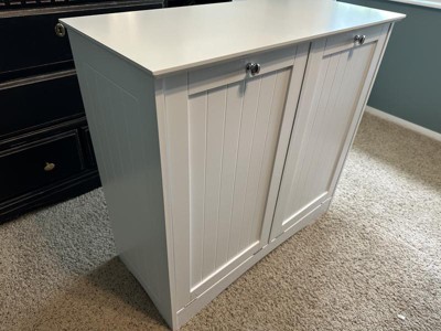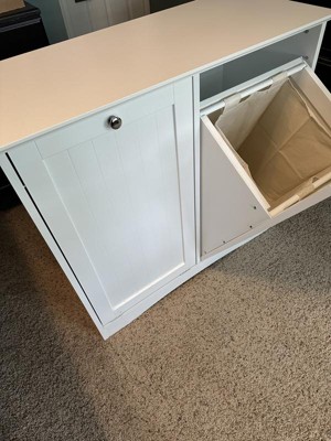 RiverRidge Home Ashland Double Tilt Out Laundry Hamper Cabinet with Removable Cloth Storage Bags White