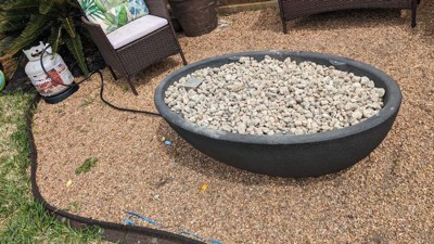 [This review was collected as part of a promotion.] What can I say, this fire pit is beautiful. It is powered by propane and has rocks to go in it for a more realistic look. Perfect addition to your patio for those cool summer nights